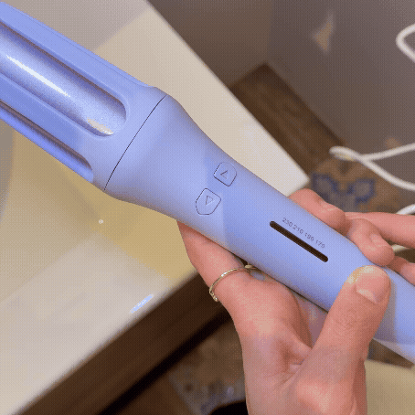 Introducimos el cabello por la ranura y pulsamos el botón hacia el sentido en el cuál queramos nuestros rizos.